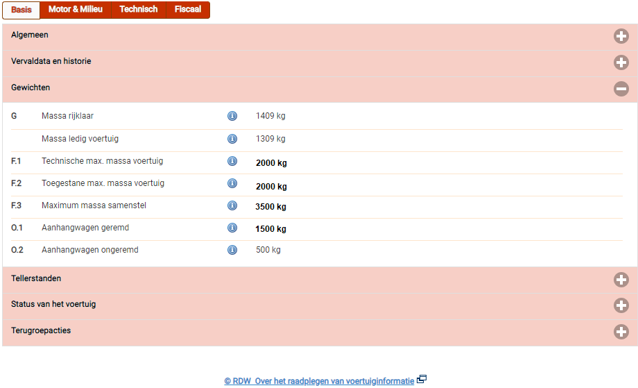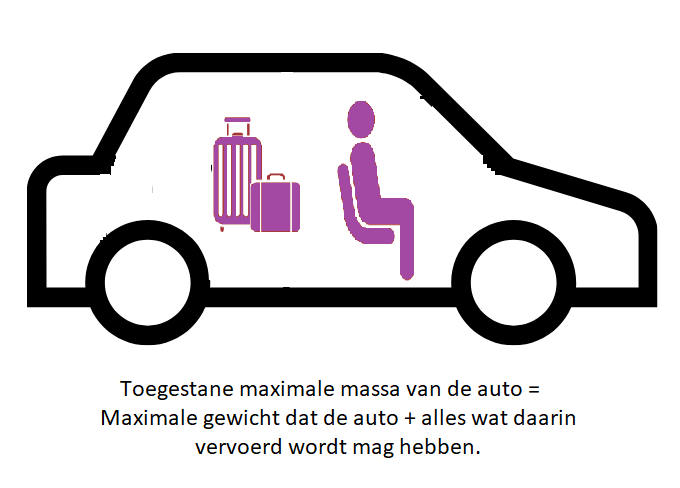 Bij deze auto is de toegestane maximale massa 2.000 kg. Dit betekent dat de auto + alles wat daarin vervoerd wordt (passagiers, lading) niet meer dan 2.000 kg mag wegen.