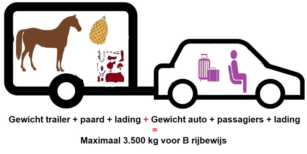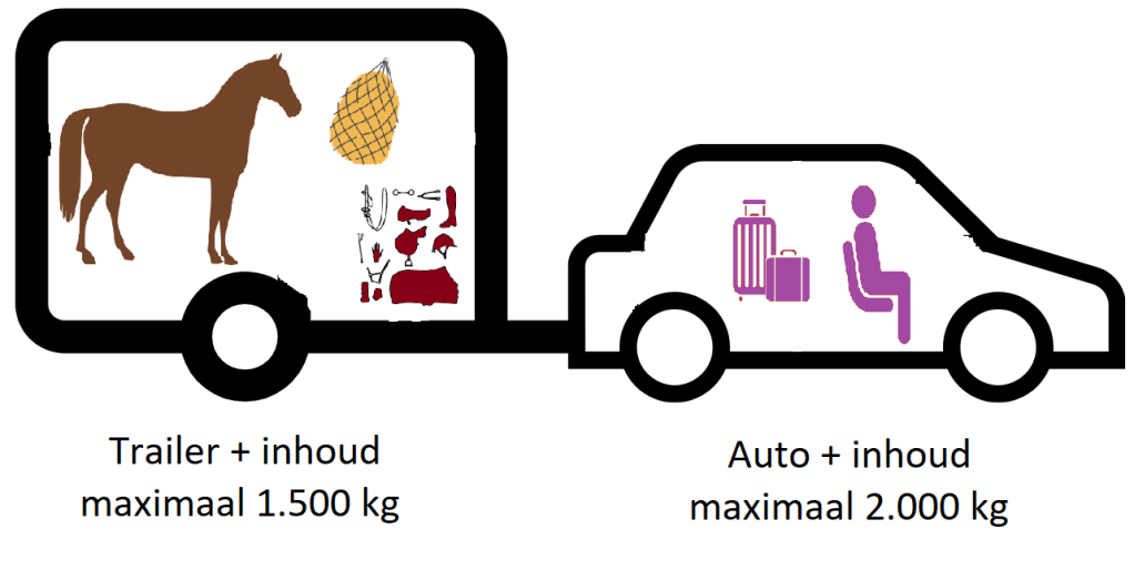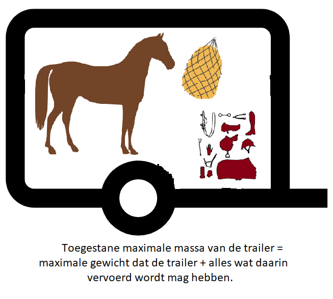 Het gaat hierbij om het totaal gewicht van de trailer + alles wat daarin vervoerd wordt (paard, hooibaal, harnachement enz.)