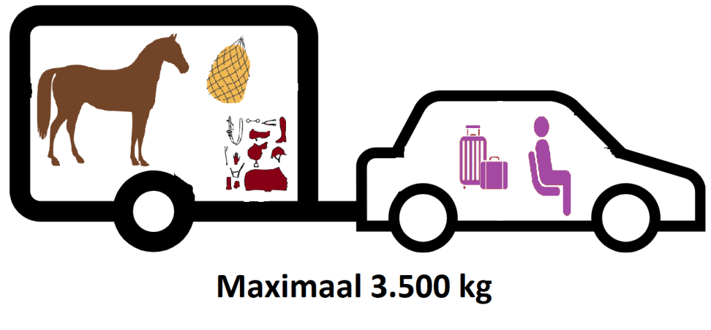In principe mag je een trailer met een B rijbewijs trekken wanneer het gewicht van de auto én de trailer, inclusief passagiers, paard en lading, samen 3.500 kg of minder is.