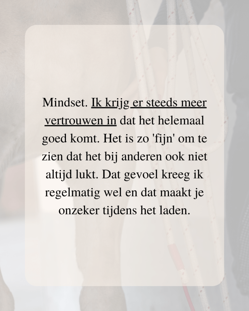 Vandaag moet je op pad met de trailer. Je hoopt stiekem dat het rustig is op stal, want het laden gaat niet soepel en iedereen heeft er altijd een mening over. Toch staan er weer stalgenoten te kijken en te fluisteren. Je voelt de schaamte en frustratie oplopen. Je paard werkt niet mee, jij wordt steeds gespannener, en de goedbedoelde – maar foute – adviezen vliegen je om de oren. Uiteindelijk staat je paard wel in de trailer, maar op een manier waar je allesbehalve trots op bent.